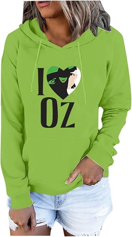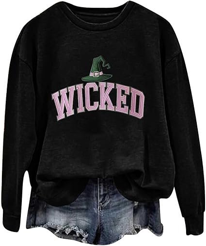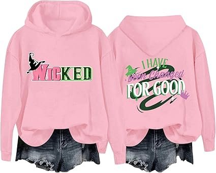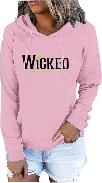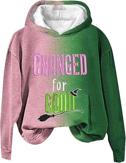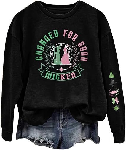 Wicked Sweatshirts for Women Pink and Green Crewneck Long Sleeve